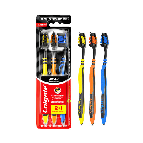 مسواک ذغالی کلیگت با برس متوسط بسته 3 عددی